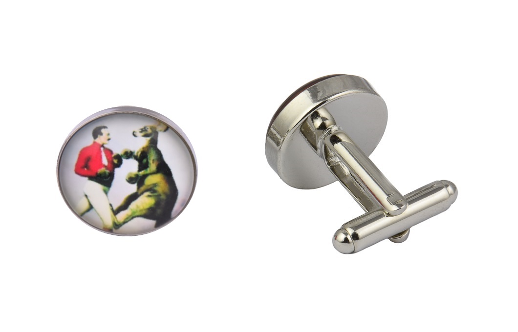 Experience the spirit of Australia and a touch of nostalgia with our Boxing Kangaroo cufflinks, showcasing a retro image of a kangaroo donning boxing gloves and taking on a human opponent! π¦πΊπ₯ Whether you're a fan of sports, an admirer of Australia's unique charm, or someone who appreciates a good dose of humor, these cufflinks are here to add a punch of fun to your ensemble.