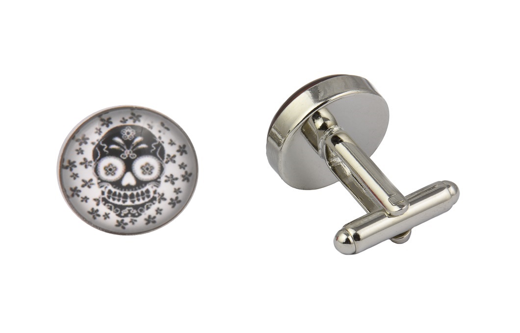 π Floral Skull Art Cufflinks Details: π Diameter: 16mm β a pair of miniature masterpieces that echo the spirit of artistic expression! π Features a captivating image of a skull at the center in bold black, adorned with intricate black flower designs, all set against a clean white background. π Crafted from the Highest AAA Quality Metal Alloys and Cabochon Glass for an impeccable finish. π Presented in a luxury black velvet cufflinks bag (Upgrade to a cufflinks box if you want to) β because every admirer of unique style deserves nothing less than the royal treatment.