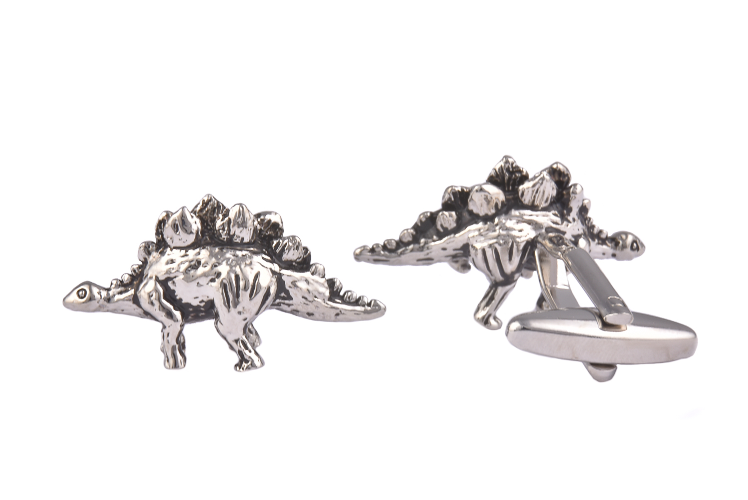 Are you ready to add a touch of prehistoric charm and a whole lot of quirkiness to your attire? Look no further! Our Stegosaurus Dinosaur Cufflinks are here to help you channel your inner paleontologist with roaring style. Shaped like a mighty Stegosaurus in shiny silver, featuring extensive details that'll make you the king (or queen) of the style Jurassic era.